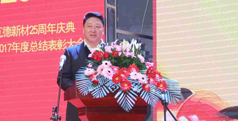 2月3日上午瓦德新材25周年慶典暨2017年度總結(jié)表彰大會(huì)于河北邯鄲五谷豐登大酒店隆重召開(kāi)。此次會(huì)議的主題為“感恩 共享 發(fā)展”。集團(tuán)董事長(zhǎng)謝富強(qiáng),總經(jīng)理常金秀,中高層領(lǐng)導(dǎo)干部,武漢工廠、邯鄲工廠、安徽工廠職工代表,社會(huì)各界友人等近300人歡聚一堂, 共同分享收獲的喜悅,迎接全新的挑戰(zhàn)。